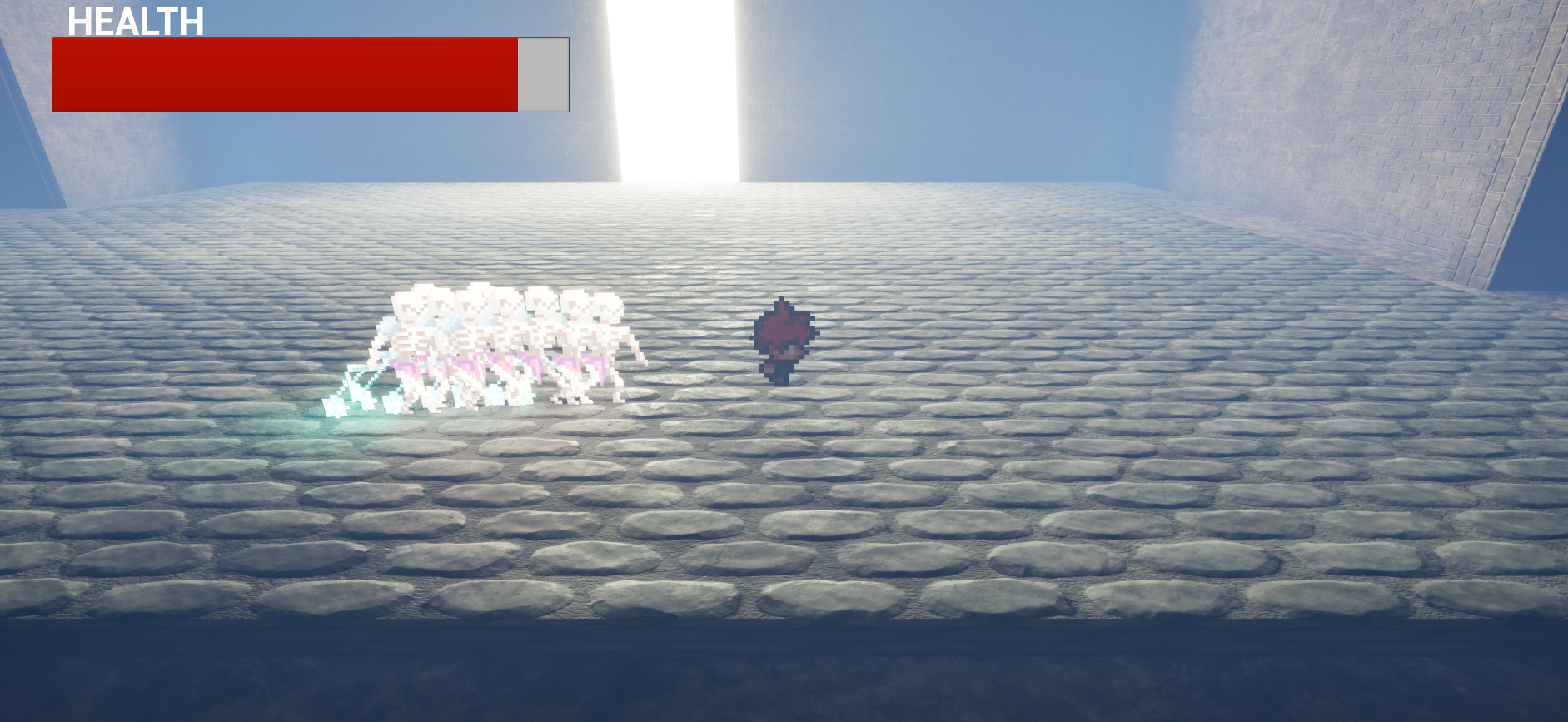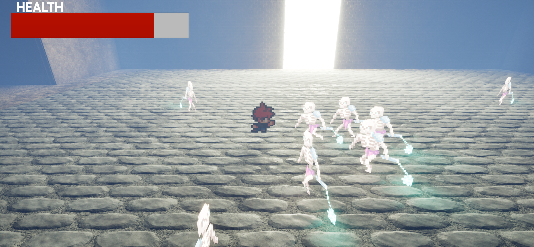 My goal was to implement sprite-based characters in a 3D-like environment. Both PS4 controllers and keyboards are compatible. I implemented an attack command when pressing the "P" button on your keyboard and the circle button on a PS4 controller. The same applies to the roll command but you'd use the space bar and the square button on a PS4 controller. My goal is to create the level a bit more, as I only have a floor plan.